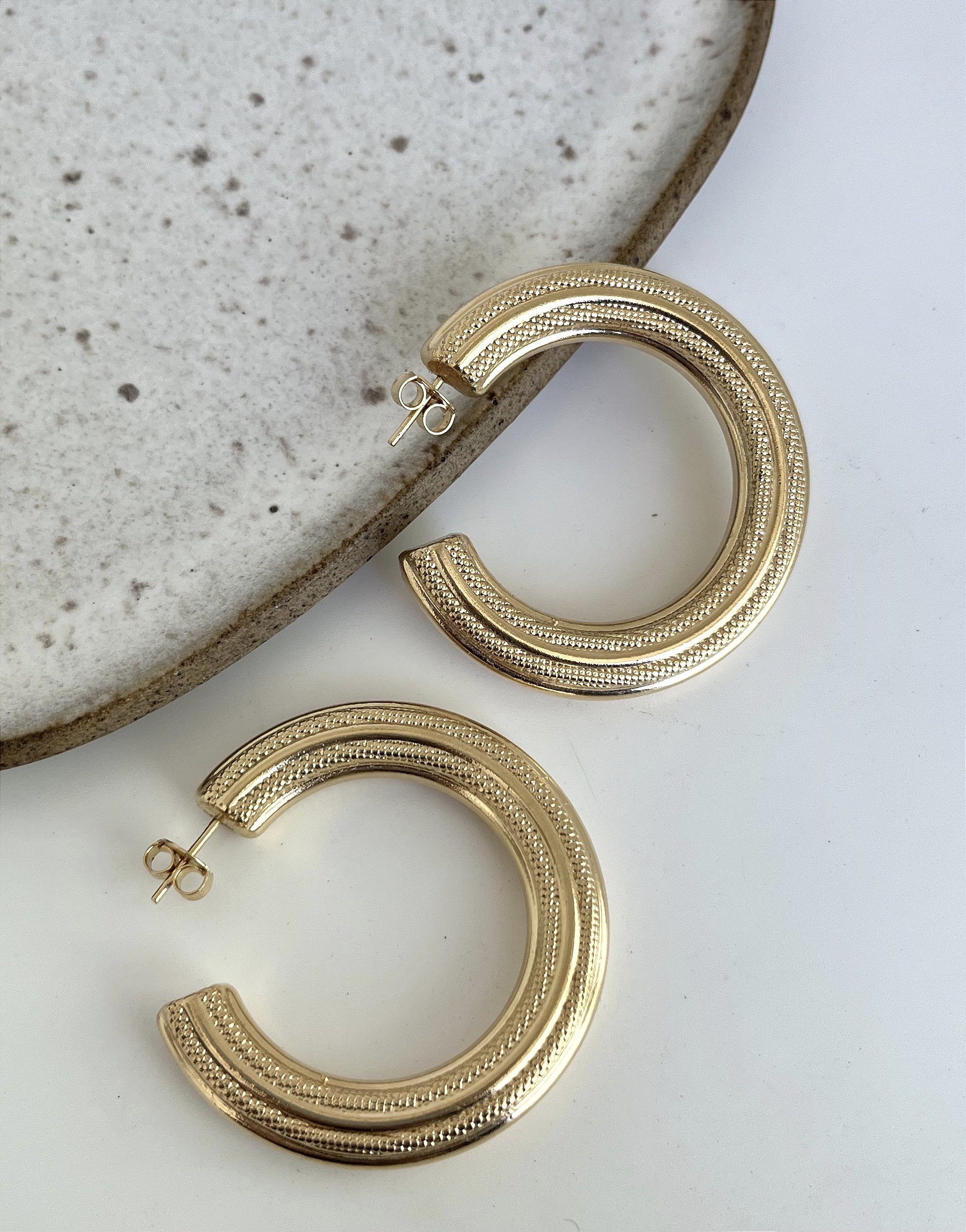 Que as argolas são um elemento indispensavel no porta joias, você já sabe ne? O segredo é investir em diferentes tamanhos e texturas, para que você possa estar pronta para qualquer ocasião. O Brinco Giorgia é uma argola bold e o melhor de tudo é que essa é uma peça SUPER LEVE!