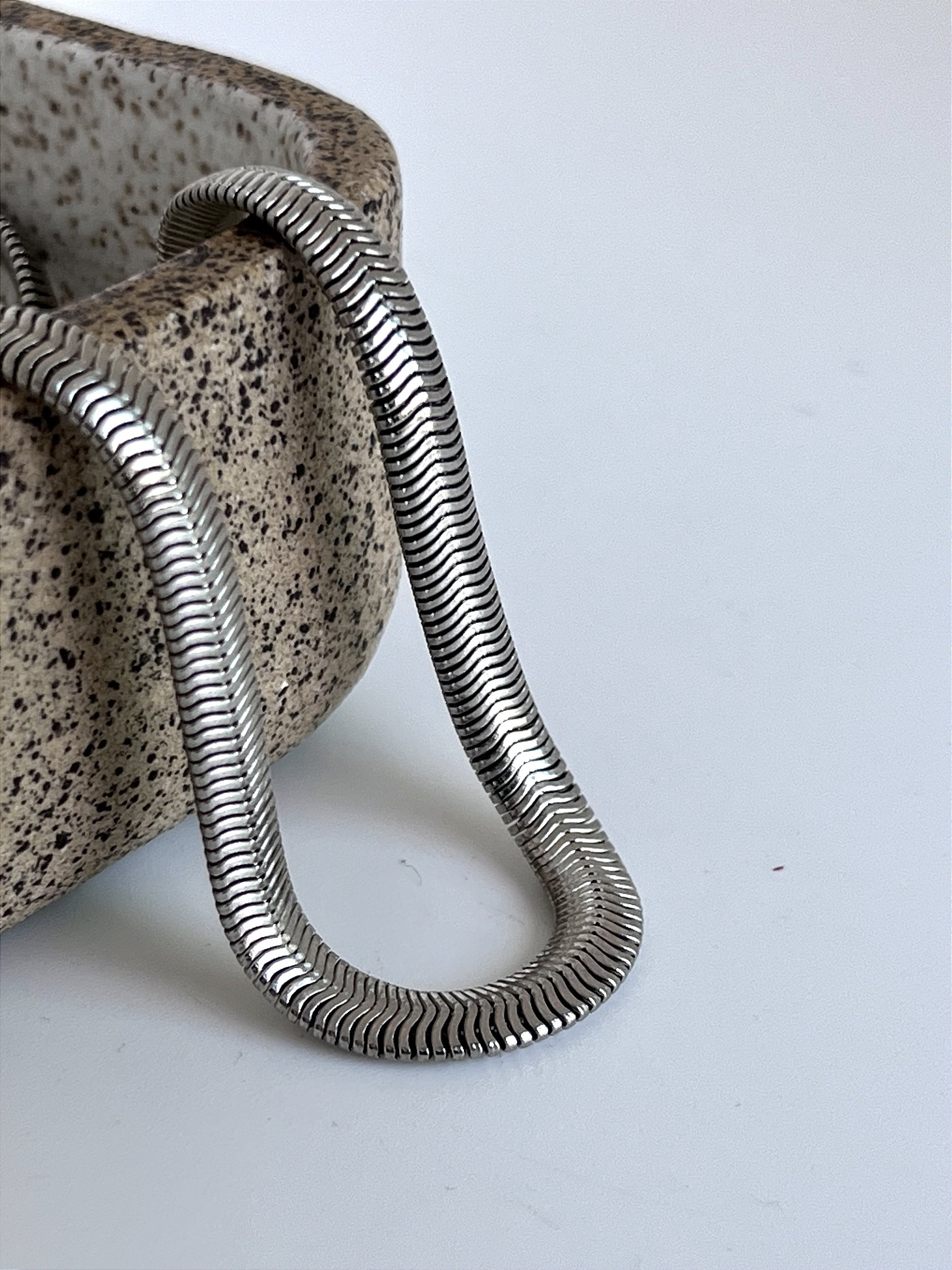 O Colar Dina é um Best seller por aqui, a famosa correntaria snake/lacraia. Uma peça cheia de personalidade e ao mesmo tempo sofisticada e charmosa. Ótima para ser usada como colar principal ou com mix de colares (na foto usamos dois colares do mesmo tamanho, utilizando o truque dos colares)